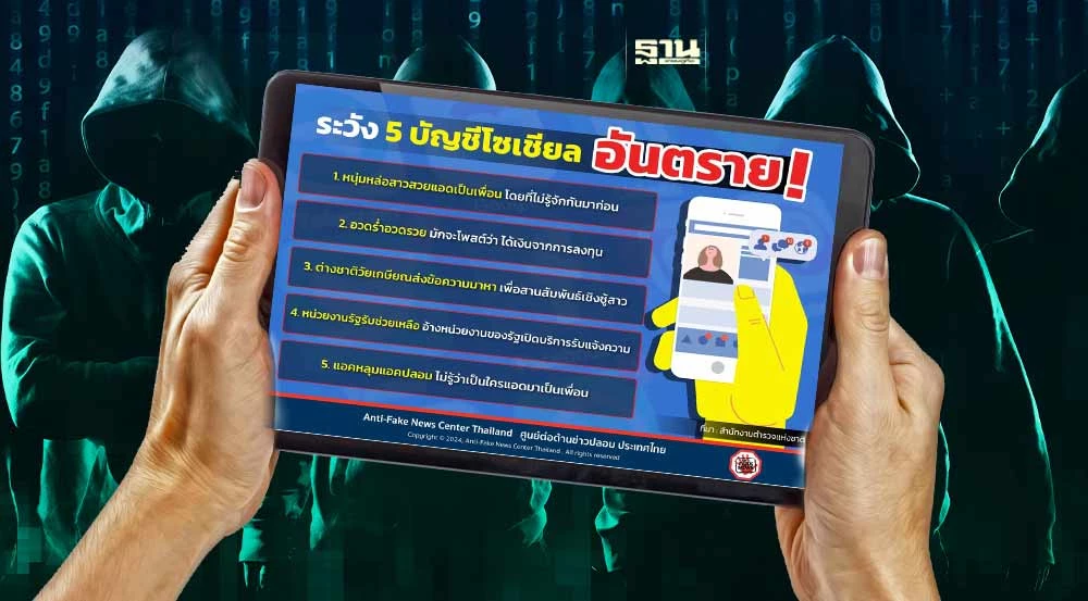 ศูนย์ต้านข่าวปลอม ได้โพสต์ข้อความว่า เตือน 5 บัญชีโซเชียลอันตราย เป็นเพราะปัจจุบันมิจฉาชีพยังคงมีการพัฒนารูปแบบในการหลอกลวงประชาชนอยู่เสมอมีการนำหลักจิตวิทยามาปรับใช้ในการหลอกลวงให้ผู้เสียหายหลงเชื่อและพบว่า มิจฉาชีพมักสร้างบัญชีสื่อสังคมออนไลน์ขึ้นมา เพื่อใช้เป็นเครื่องมือในการหลอกลวงเหยื่อ รูปแบบของบัญชีสื่อสังคมออนไลน์ที่ต้องระวังเพราะอาจเป็นมิจฉาชีพมี 5 รูปแบบดังต่อไปนี้