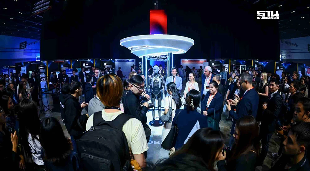 ที่สุดของการเปิดโลก “The World of Tomorrow with AI” ในปีนี้ ต้องขอยกให้กับการมาปรากฏตัวของ Ameca หุ่นยนต์ฮิวแมนนอยด์สุดล้ำ เป็นครั้งแรกในประเทศไทยและเอเชียตะวันออกเฉียงใต้ ที่ได้มาโชว์ความสามารถผ่านการสนทนาโต้ตอบอย่างชาญฉลาดกับผู้เข้าร่วมงานอย่างใกล้ชิด