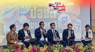 นักวิชาการ-สื่อ ชำแหละนโยบายขายฝันพรรคการเมือง รุมทึ้งงบกระหน่ำ 3 ล้านล้าน บนเวทีสัมมนามหาวิทยาลัยธรรมศาสตร์ สถาบันสัญญาธรรมศักดิ์เพื่อประชาธิปไตย อ่านเกมเลือกตั้ง66 นโยบายใครปัง ใครพัง