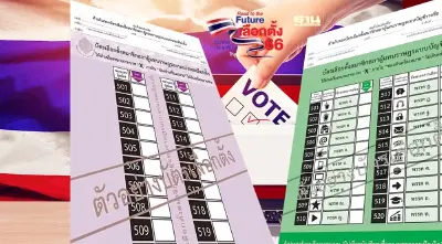 กกต.โชว์บัตรเลือกตั้งแบบทางการ แบ่งเขตสีม่วง-บัญชีสีเขียว