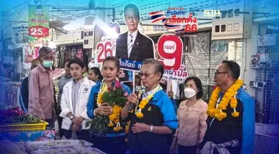 “ชวน หลีกภัย”อดีตหัวหน้าพรรคประชาธิปัตย์ ลุยหาเสียงอ้อนแม่ค้าตลาดเทศบาลเมืองสุโขทัย เลือกผู้สมัคร ส.ส. และ ปชป.