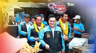 "จุรินทร์"นำทัพ ปชป.เบอร์ 26 ช่วย 5 ผู้สมัคร ส.ส.อยุธยา หาเสียงตลาดเจ้าพรหม