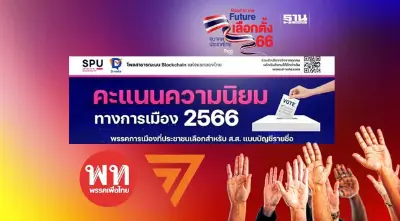 วันนี้ (6 พ.ค. 66) มหาวิทยาลัยศรีปทุม (SPU) ร่วมกับ ดีโหวต (D-vote) เปิดเผยผลสำรวจ "คะแนนความนิยมทางการเมือง 2566" ประจำสัปดาห์ โดยสำรวจระหว่างวันที่ 29 เม.ย. - 5 พ.ค. 2566 จากประชาชนอายุ 18 ปีขึ้นไปกระจายทุกช่วงอายุ จังหวัด ระดับการศึกษา และอาชีพทั่วประเทศ จำนวน 2,526 ตัวอย่าง ค่าความเชื่อมั่นที่ร้อยละ 97.0 ผ่านเทคโนโลยีสำรวจความเห็นสาธารณะบนบล็อกเชน