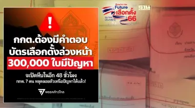 พรรคก้าวไกล ตั้งคำถามถึง กกต. บัตรเลือกตั้งล่วงหน้า 300,000 ใบมีปัญหา กกต.หมกเม็ดหรือไม่ หลัง ไปรษณีย์ไทย ยืนยันบัตรเลือกตั้งล่วงหน้าลายมืออ่านไม่ออก คิด 10-15% ของบัตรทั้งหมด