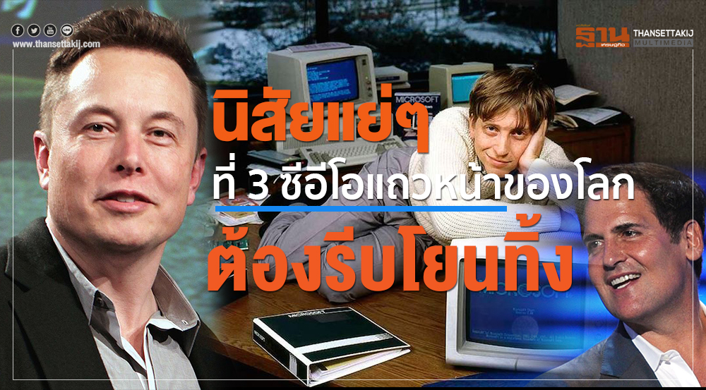 มาร์ค คิวบัน ล้วนเป็นผู้บริหารบริษัทเอกชนที่ประสบความสำเร็จและต่างก็เป็นมหาเศรษฐีติดอันดับต้น ๆ ของโลก ผู้ชายต่างวัย ต่างนิสัยใจคอ มีบางสิ่งบางอย่างที่เหมือนกัน และนำไปสู่ความสำเร็จในชีวิตและหน้าที่การงาน ทั้ง 3 คน ก็เหมือนคนเราทั่วไป ที่มีนิสัยบางอย่างไม่ค่อยดีเท่าไหร่ ขืนปล่อยทิ้งไว้ มีแต่จะเหนี่ยวรั้งความเจริญก้าวหน้า เรามาดูกันว่านิสัยแย่ ๆ ที่ผู้บริหารแถวหน้า 3 คนนี้ เคยมีและโยนทิ้งไปแล้ว มีอะไรกันบ้าง