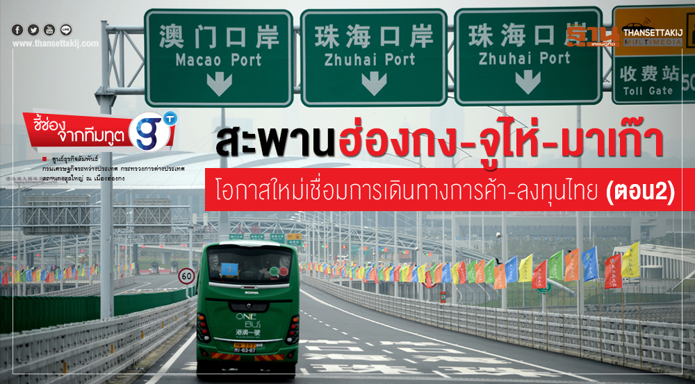 ... การสร้างสะพาน "ฮ่องกง-จูไห่-มาเก๊า" เป็นการยกระดับการคมนาคมที่จะช่วยส่งเสริมโครงการพัฒนาพื้นที่อ่าวกวางตุ้ง-ฮ่องกง-มาเก๊า (Greater Bay Area) ซึ่งมีเป้าหมายที่จะพัฒนาและสร้างระบบนิเวศทางเศรษฐกิจภายในพื้นที่ที่ประกอบไปด้วย ฮ่องกง มาเก๊า และหัวเมืองทั้งหมด 9 แห่งในมณฑลกวางตุ้ง ที่ถูกจัดให้เป็นเขตเศรษฐกิจสามเหลี่ยมปากแม่นํ้าจูเจียง (Pearl River Delta) ซึ่งได้แก่ กวางโจว เสินเจิ้น จูไห่ ฝอซาน ตงก่วน หุ้ยโจว จงซาน เจียงเหมิน และจ้าวซิ่ง โดยสะพานแห่งนี้จะช่วยร่นระยะเวลาในการเดินทางทางบกภายในพื้นที่ Greater Bay Area ได้ เช่น จากเดิมที่ต้องใช้ระยะเวลาเดินทางกว่า 4 ชั่วโมง จากฮ่องกงไปเมืองจูไห่ ก็ลดลงเหลือเพียงแค่ 45 นาที ส่งผลให้การเดินทางท่องเที่ยวและการขนส่งสินค้าระหว่างฮ่องกง มาเก๊า และเมืองต่าง ๆ ทางตอนใต้ของจีนแผ่นดินใหญ่ มีความสะดวกรวดเร็วยิ่งขึ้น ซึ่งก็จะช่วยกระตุ้นเศรษฐกิจภายในพื้นที่ดังกล่าว