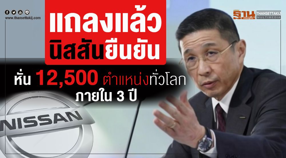 หลังจากมีข่าวสะพัดออกมาว่า นิสสัน ผู้ผลิตรถยนต์รายใหญ่อันดับ 2 ของญี่ปุ่นกำลังมีแผนจะลดจำนวนพนักงานทั่วโลกลงมากกว่า 10,000 คน หรือไม่น้อยกว่า 7% ของจำนวนพนักงานทั้งหมดที่มีอยู่ ต่อมาวันนี้ (25 ก.ค. 2562) นิสสันออกมาแถลงการณ์ยืนยันแล้วว่า จะมีการลดจำนวนพนักงานทั้งหมดรวม 12,500 คนภายในปี 2565 แต่ไม่ได้ให้รายละเอียดว่าจะกระทบการจ้างงานบุคลลากรที่ประเทศใดบ้างที่นิสสันเข้าไปตั้งโรงงานผลิต