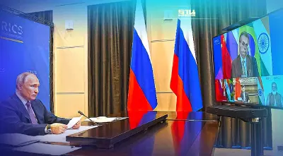 ปธน.ปูติน ผู้นำรัสเซีย เตรียมใช้เวทีการประชุมผู้นำชาติ BRICS ซึ่งเป็นการประชุมออนไลน์ที่มีจีนเป็นเจ้าภาพในสัปดาห์นี้ หาแนวร่วมต้านอิทธิพลชาติตะวันตก หวังตั้งโรงกลั่นน้ำมันร่วมกัน-เลี่ยงใช้เงินดอลลาร์สหรัฐ