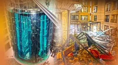สำนักข่าวบีบีซีรายงานว่า เกิดเหตุ ตู้ปลาขนาดยักษ์ทรงกระบอก ที่เรียกว่า "อะควาดอม" (AquaDom) ซึ่งเลี้ยงปลาเขตร้อนพันธุ์หายากราว 1,500 ตัว กระจกแตกแบบระเบิดช่วงเช้าตรู่วานนี้ (16 ธ.ค.) ทำให้ประชาชน 2 รายได้รับบาดเจ็บจากกระจกบาด และเจ้าหน้าที่ตำรวจระบุว่า นี่คือเหตุการณ์ความเสียหายที่เหลือเชื่อ