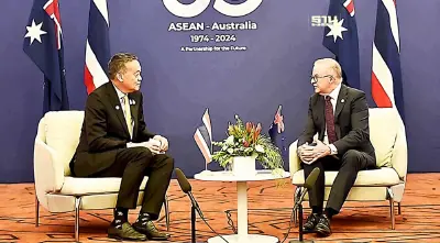 นายเศรษฐา ทวีสิน นายกรัฐมนตรีและรัฐมนตรีว่าการกระทรวงการคลัง พบหารือทวิภาคีกับ นายแอนโทนี แอลบาเนซี นายกรัฐมนตรีออสเตรเลีย ในห้วง การประชุมสุดยอดอาเซียน-ออสเตรเลีย สมัยพิเศษ เพื่อฉลองวาระครบรอบ 50 ปีความสัมพันธ์ วันนี้ (5 มีนาคม 2567) เวลา 11.50 น. (ตามเวลาท้องถิ่นนครเมลเบิร์น เครือรัฐออสเตรเลีย ซึ่งเร็วกว่าไทย 4 ชั่วโมง) ณ Melbourne Convention and Exhibition Center (MCEC) นครเมลเบิร์น เครือรัฐออสเตรเลีย