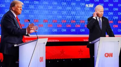 ปธน.โจ ไบเดน และอดีปธน.โดนัลด์ ทรัมป์ ประชันวิสัยทัศน์ครั้งแรกในฐานะ "ว่าที่" ตัวเเทนพรรคเดโมเเครตและรีพับลิกันในการเลือกตั้งประธานาธิบดีสหรัฐที่กำลังจะมีขึ้นปลายปีนี้ หลายฝ่ายมองว่าไบเดนเพลี่ยงพล้ำในยกแรก และกลุ่มทุนพรรคเดโมแครตเตรียมเคลื่อนไหวให้เขาถอนตัว