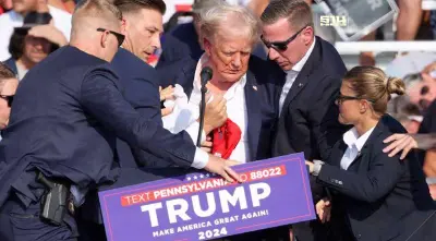 นายโดนัลด์ ทรัมป์ อดีตประธานาธิบดีสหรัฐอเมริกา วัย 78 ปี ได้ถูกนำตัวออกจากเวทีหาเสียงท่ามกลางความตื่นตระหนกของผู้คน รอยเตอร์รายงานว่า เจ้าหน้าที่อารักขารุดเข้าช่วยเหลือทรัมป์ ในขณะที่เขามุดหลบลงใต้โพเดียม และพวกเจ้าหน้าที่ติดอาวุธเข้าประจำการตามจุดต่างๆ บริเวณด้านหน้าเวที เขาได้รับการอารักขาพาตัวไปขึ้นรถนำส่งโรงพยาบาลในบริเวณใกล้เคียง
