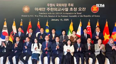 เมื่อวันที่ 15 ม.ค. 2568 นายธานี แสงรัตน์ เอกอัครราชทูตไทย ณ กรุงโซล เข้าร่วมงานเลี้ยงอาหารกลางวันระหว่างเอกอัครราชทูตประเทศสมาชิกอาเซียนในสาธารณรัฐเกาหลีกับนายอู ว็อน ชิก ประธานรัฐสภาสาธารฯรัฐเกาหลี ณ อาคารรับรอง (ซารังแจ) ของรัฐสภาสาธารณรัฐเกาหลี โดยมีสมาชิกรัฐสภาที่ได้รับการเสนอชื่อให้ดำรงตำแหน่งประธานกลุ่มมิตรภาพของรัฐสภาสาธารณรัฐเกาหลีและประเทศสมาชิกอาเซียนต่าง ๆ เข้าร่วมด้วย